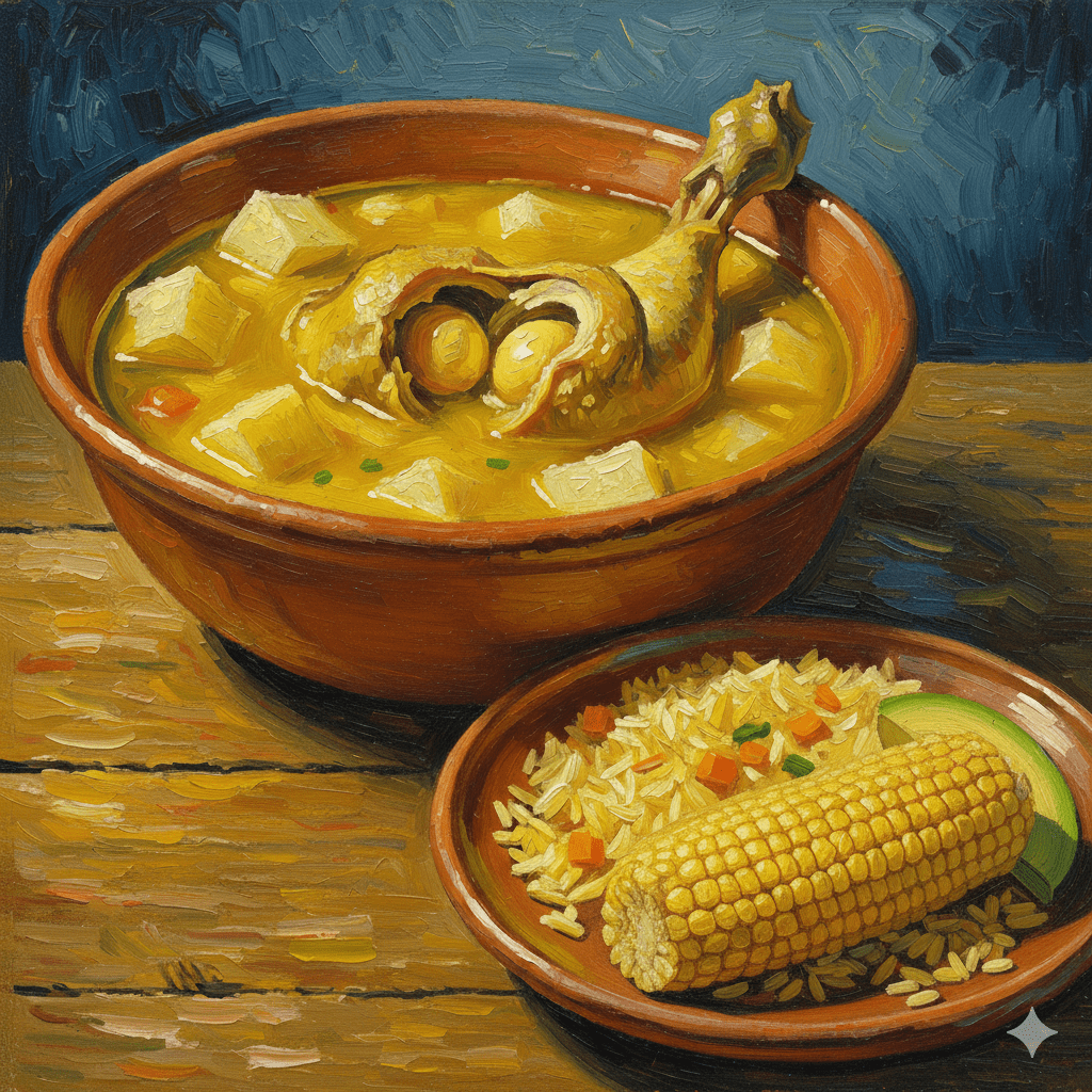 Dicese del plato en cuya forma de servir se encuentra una parte de la gallina desmembrada que puede tener mayor o menor valor según su tamaño y volumen. En plato contiguo, en el líquido ciertamente espeso -conocido como «el caldo»- se evidencian ciertos rastros iridiscentes en sutil forma de burbuja, a causa de la grasa que navega sobre el agua salada.